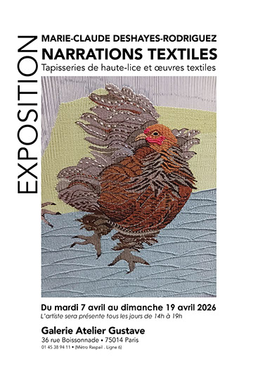 • 2026 Avril • Exposition à la galerie Atelier Gustave 36 rue Boissonnade 75014 Paris.